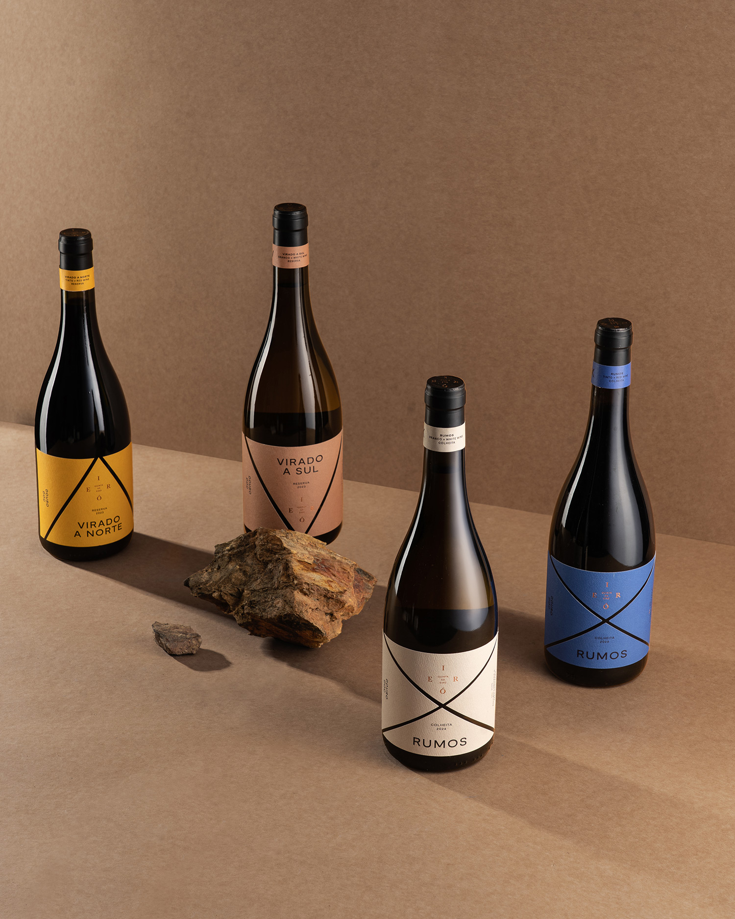 Each wine reflects the side of the vineyard it comes from, Virado a Norte and Virado a Sul, expressed through geometric arrows pointing to each direction.